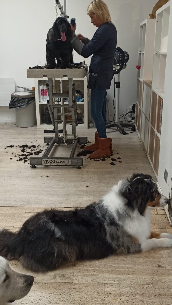 La tonte : le bain avec shampoing adapté / le séchage / la tonte / l’hygiène avec la coupe des ongles, soins des yeux et oreilles.